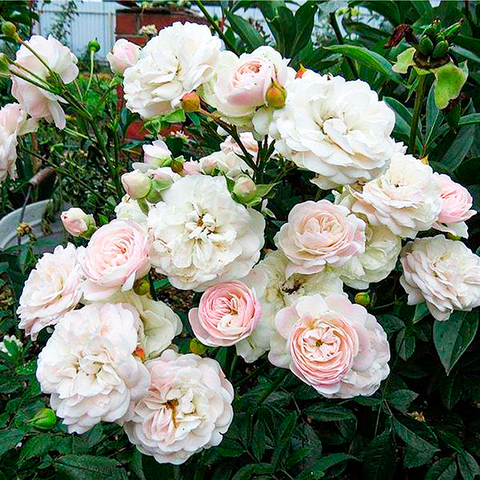 Цвітіння триває з початку літа до осені з кількома хвилями. Квіти середнього розміру, махрові, ніжного забарвлення (пастельні тони), стійкі до дощу й частого використання у композиціях. Аромат легкий, ненав’язливий. За сприятливих умов троянда цвіте рясно і повторно впродовж усього сезону.