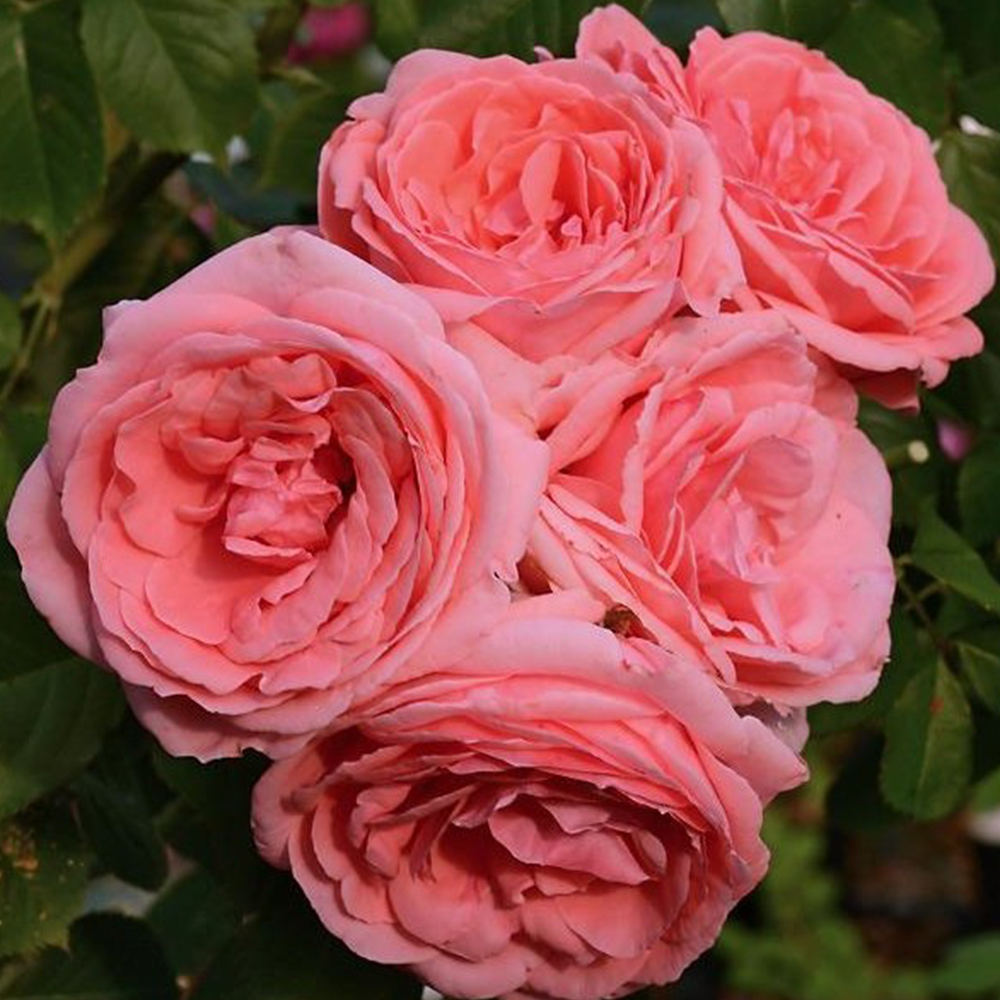 Цвітіння триває з початку літа до осені хвилями. Квіти великі, махрові, ніжно-рожевого або кремово-рожевого кольору, з приємним, м’яким ароматом. Аромат ненав’язливий, типовий для декоративних троянд. Основні хвилі цвітіння повторюються протягом сезону, забезпечуючи тривалий декоративний ефект у саду.