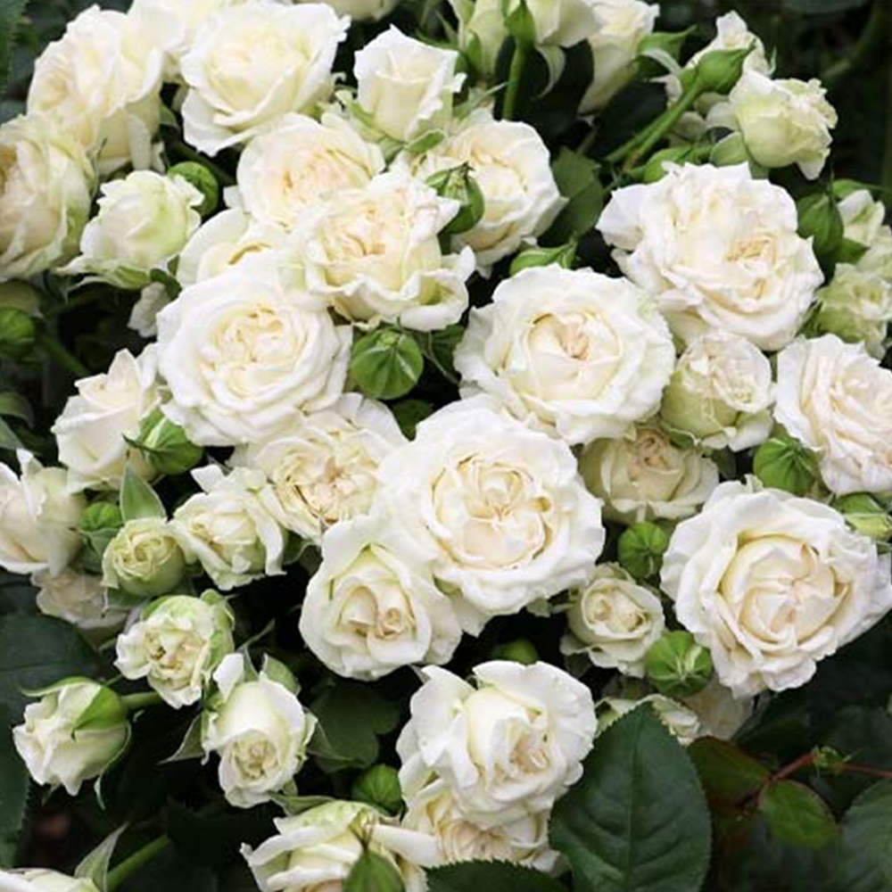 Цвітіння триває з початку літа до осені хвилями. Квіти великі, махрові, чисто-білого кольору, з приємним, легким ароматом. Аромат ненав’язливий, типовий для декоративних троянд. Основні хвилі цвітіння повторюються протягом сезону, забезпечуючи тривалий декоративний ефект у саду.